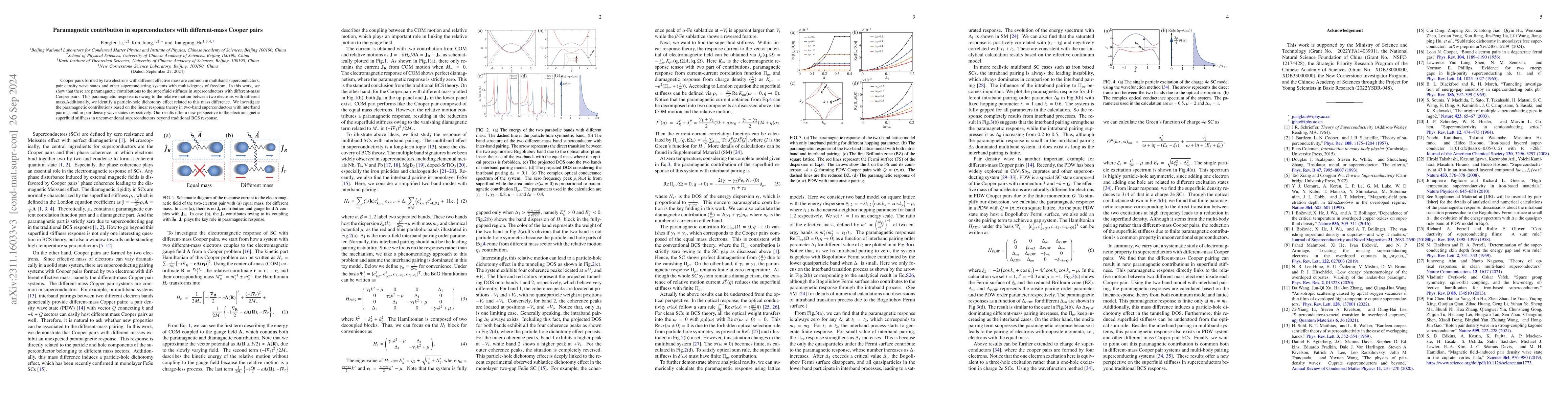 This research investigates paramagnetic contributions to superfluid stiffness in unconventional superconductors with different-mass Cooper pairs, revealing a relative motion-induced paramagnetic response. The findings provide new insights into electromagnetic superfluid stiffness in multiband systems, extending beyond BCS theory.