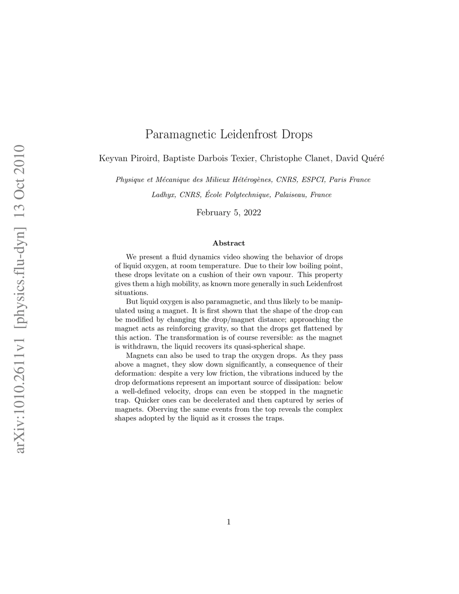 The paper presents a novel approach to manipulating paramagnetic fluids using magnets, specifically demonstrating this with liquid oxygen drops in the Leidenfrost state.