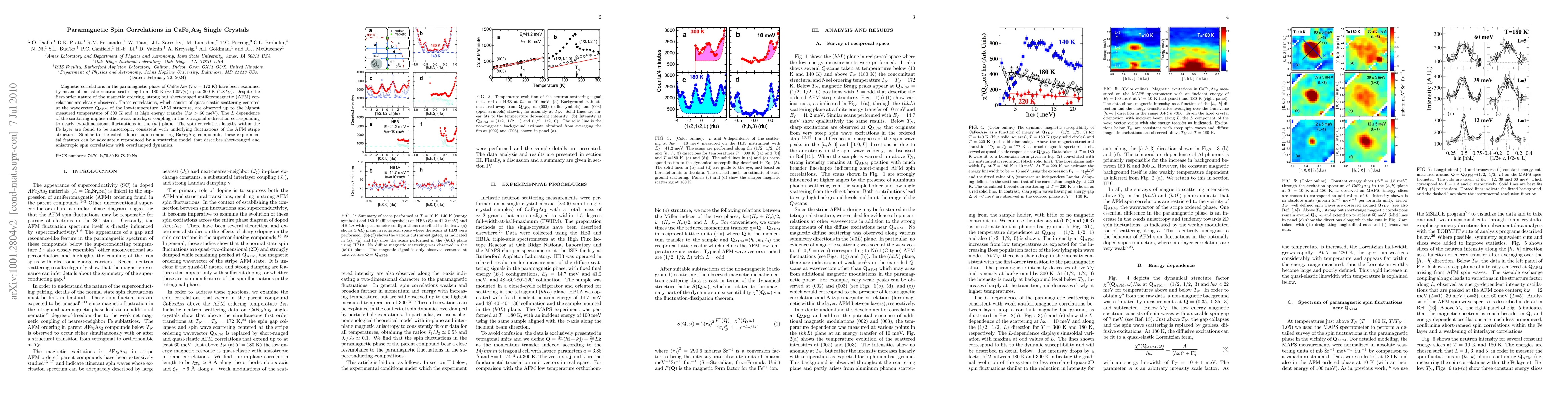 The study examines paramagnetic spin correlations in CaFe2As2 single crystals using inelastic neutron scattering from 180 K up to 300 K, focusing on the paramagnetic phase above the Néel temperature (TN=172 K).
