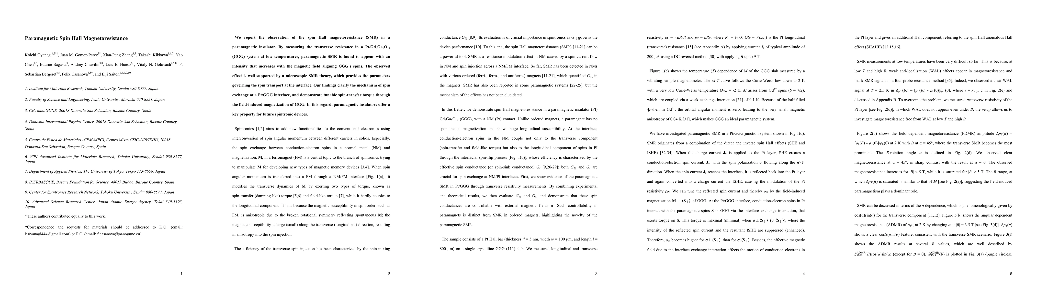Researchers discovered spin Hall magnetoresistance in a paramagnetic insulator, allowing for new spintronic manipulation of spin states without spontaneous magnetization. This finding clarifies the mechanism of spin-transport at metal/paramagnetic insulator interfaces.