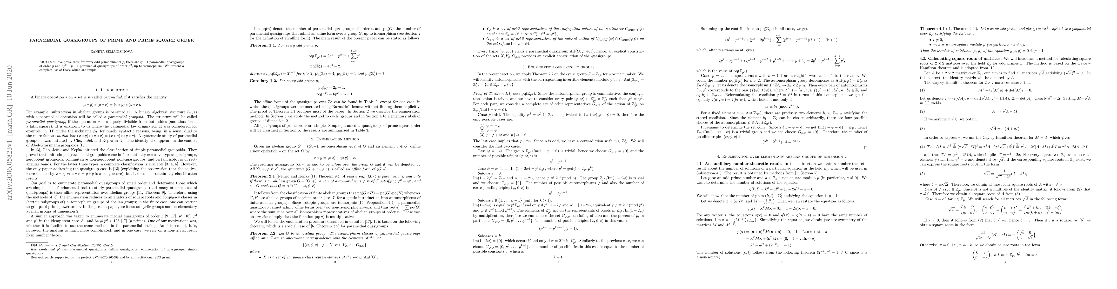 This paper establishes the number of paramedial quasigroups of prime and prime square order, showing there are $2p-1$ such quasigroups of order $p$ and $6p^2-p-1$ for order $p^2$ up to isomorphism, and provides a complete list of simple quasigroups.