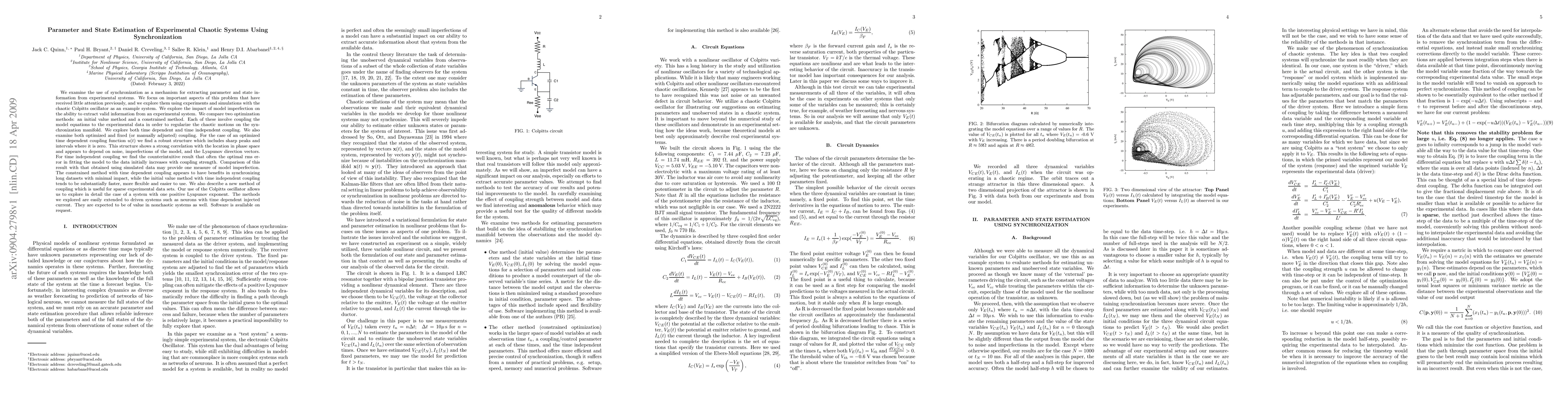 We examine the use of synchronization as a mechanism for extracting parameter and state information from experimental systems. We focus on important aspects of this problem that have received little attention previously, and we explore them using experiments and simulations with the chaotic Colpitts oscillator as an example system. We explore the impact of model imperfection on the ability to extract valid information from an experimental system. We compare two optimization methods: an initial value method and a constrained method. Each of these involve coupling the model equations to the experimental data in order to regularize the chaotic motions on the synchronization manifold. We explore both time dependent and time independent coupling. We also examine both optimized and fixed (or manually adjusted) coupling. For the case of an optimized time dependent coupling function u(t) we find a robust structure which includes sharp peaks and intervals where it is zero. This structure shows a strong correlation with the location in phase space and appears to depend on noise, imperfections of the model, and the Lyapunov direction vectors. Comparison of this result with that obtained using simulated data may provide one measure of model imperfection. The constrained method with time dependent coupling appears to have benefits in synchronizing long datasets with minimal impact, while the initial value method with time independent coupling tends to be substantially faster, more flexible and easier to use. We also describe a new method of coupling which is useful for sparse experimental data sets. Our use of the Colpitts oscillator allows us to explore in detail the case of a system with one positive Lyapunov exponent. The methods we explored are easily extended to driven systems such as neurons with time dependent injected current.