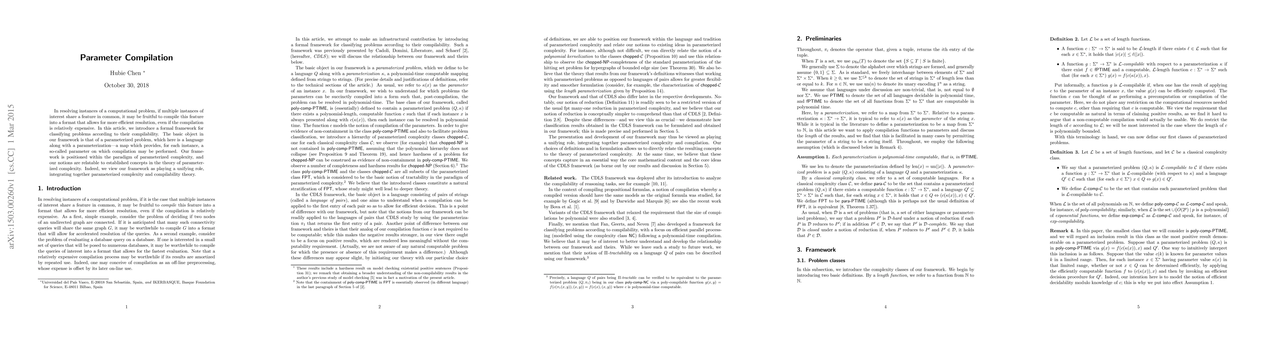 This paper presents a formal framework for classifying computational problems based on their compilability. It introduces parameterized problems, a language with a parameter for efficient compilation, positioned within parameterized complexity theory, serving as a unifying role for both fields.