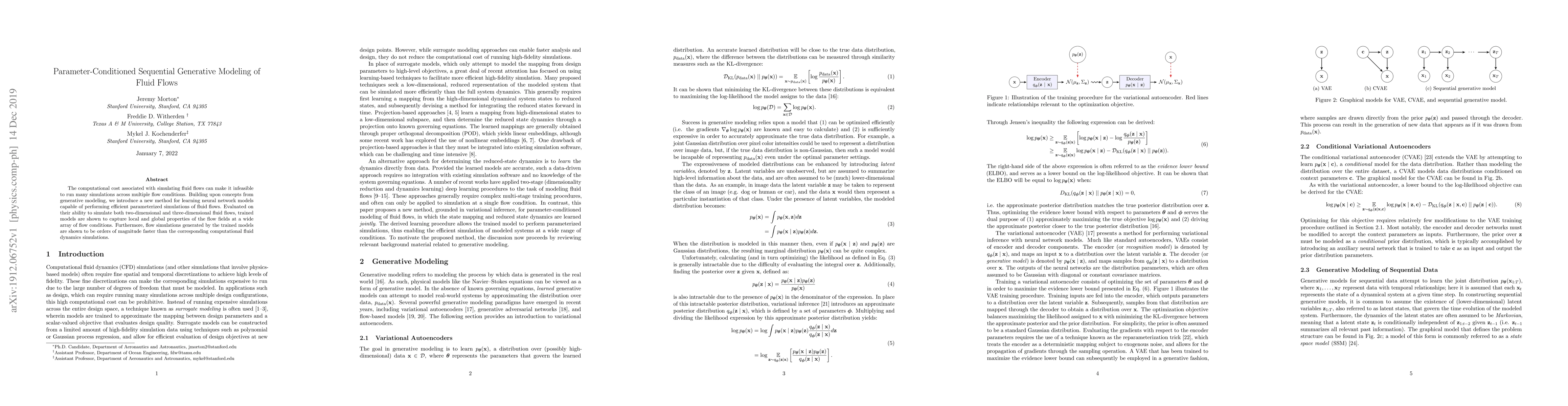 The computational cost associated with simulating fluid flows can make it infeasible to run many simulations across multiple flow conditions. Building upon concepts from generative modeling, we introduce a new method for learning neural network models capable of performing efficient parameterized simulations of fluid flows. Evaluated on their ability to simulate both two-dimensional and three-dimensional fluid flows, trained models are shown to capture local and global properties of the flow fields at a wide array of flow conditions. Furthermore, flow simulations generated by the trained models are shown to be orders of magnitude faster than the corresponding computational fluid dynamics simulations.
