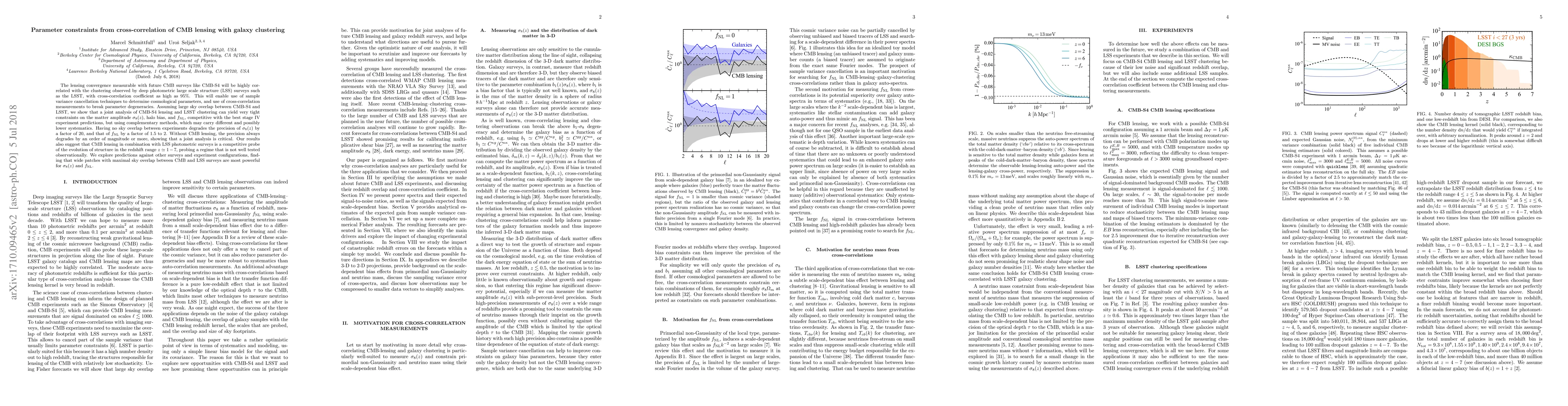 This paper demonstrates that cross-correlation between CMB lensing from future surveys like CMB-S4 and galaxy clustering from large-scale structure surveys such as LSST can yield tight constraints on cosmological parameters like $\sigma_8(z)$ and $f_\mathrm{NL}$. The study emphasizes the importance of large sky overlap for precision, showing that without it, the accuracy degrades significantly.