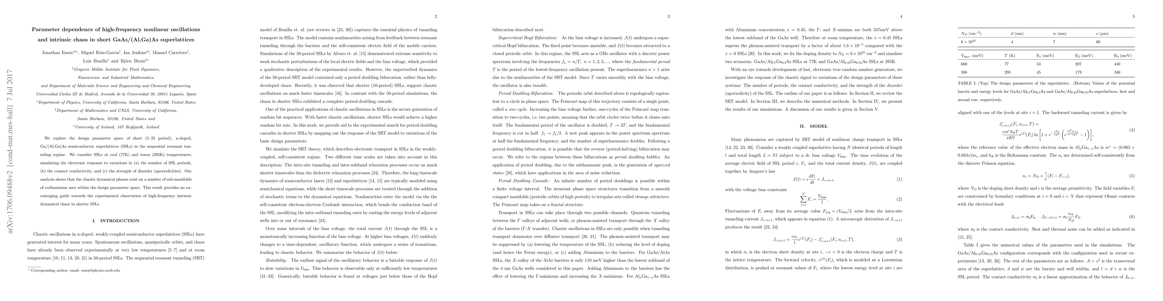 This paper investigates the parameter dependence of nonlinear oscillations and intrinsic chaos in short n-doped GaAs/(Al,Ga)As superlattices, revealing chaotic dynamical phases across various design parameters, including period number, contact conductivity, and disorder strength, at both cool and warm temperatures. The findings suggest potential pathways for observing intrinsic dynamical chaos in these systems.