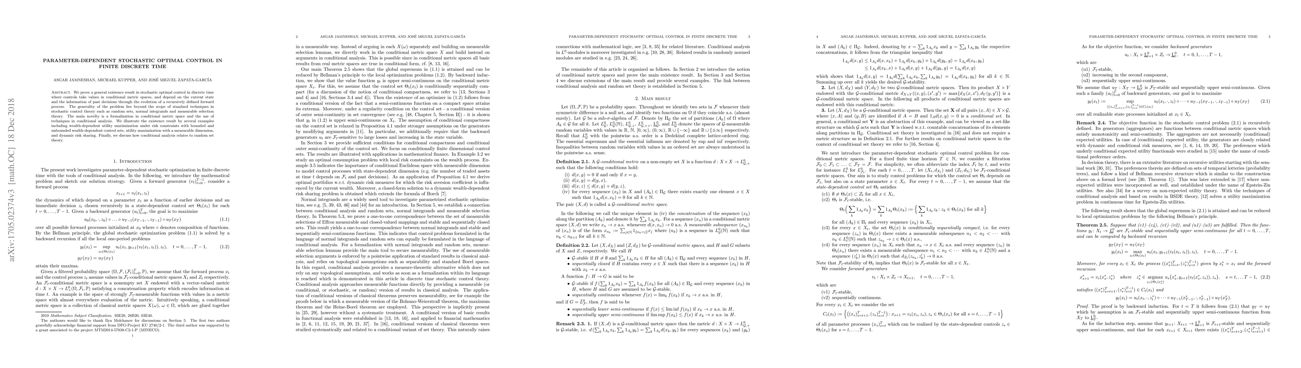 We prove a general existence result in stochastic optimal control in discrete time where controls take values in conditional metric spaces, and depend on the current state and the information of past decisions through the evolution of a recursively defined forward process. The generality of the problem lies beyond the scope of standard techniques in stochastic control theory such as random sets, normal integrands and measurable selection theory. The main novelty is a formalization in conditional metric space and the use of techniques in conditional analysis. We illustrate the existence result by several examples including wealth-dependent utility maximization under risk constraints with bounded and unbounded wealth-dependent control sets, utility maximization with a measurable dimension, and dynamic risk sharing. Finally, we discuss how conditional analysis relates to random set theory.