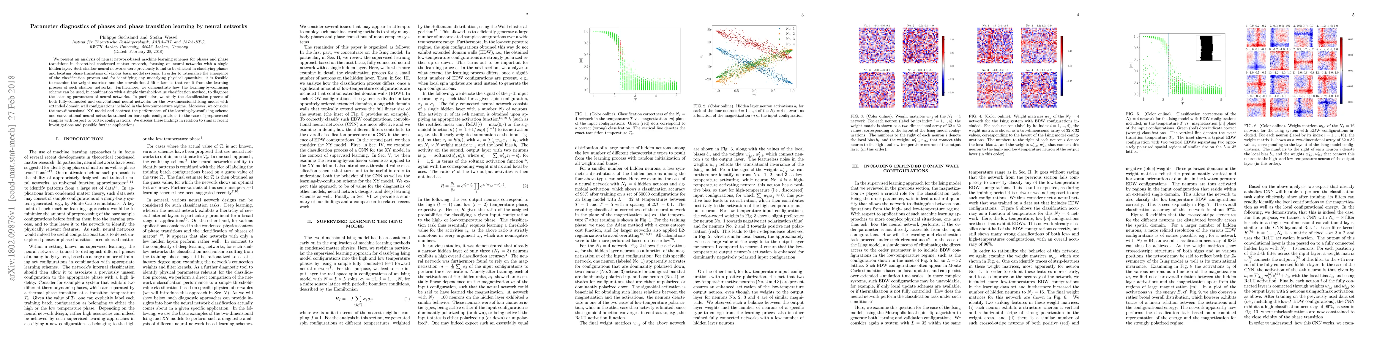 This paper analyzes how neural networks learn to classify phases and phase transitions in materials science, finding that they can diagnose learning parameters through weight matrices and convolutional filter kernels.