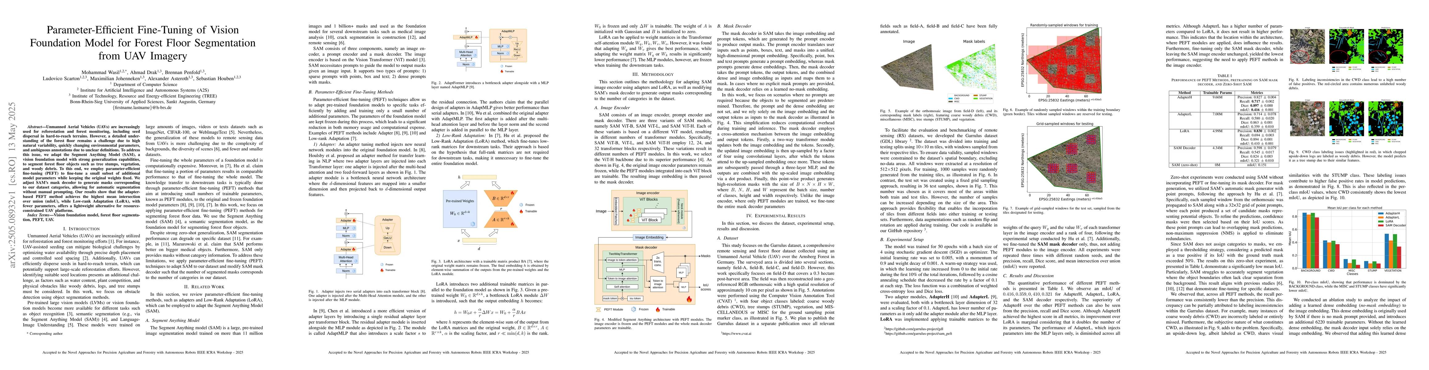 Researchers adapted a vision foundation model to segment forest floor objects from UAV imagery using parameter-efficient fine-tuning, achieving the highest mean intersection over union (mIoU). A lightweight alternative is also proposed for resource-constrained platforms.
