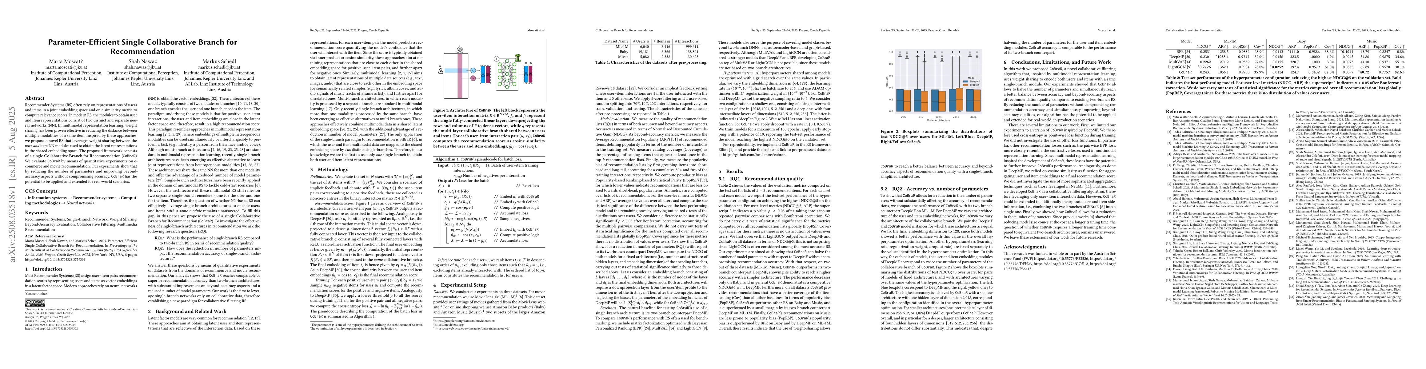 Recommender Systems (RS) often rely on representations of users and items in a joint embedding space and on a similarity metric to compute relevance scores. In modern RS, the modules to obtain user and item representations consist of two distinct and separate neural networks (NN). In multimodal representation learning, weight sharing has been proven effective in reducing the distance between multiple modalities of a same item. Inspired by these approaches, we propose a novel RS that leverages weight sharing between the user and item NN modules used to obtain the latent representations in the shared embedding space. The proposed framework consists of a single Collaborative Branch for Recommendation (CoBraR). We evaluate CoBraR by means of quantitative experiments on e-commerce and movie recommendation. Our experiments show that by reducing the number of parameters and improving beyond-accuracy aspects without compromising accuracy, CoBraR has the potential to be applied and extended for real-world scenarios.