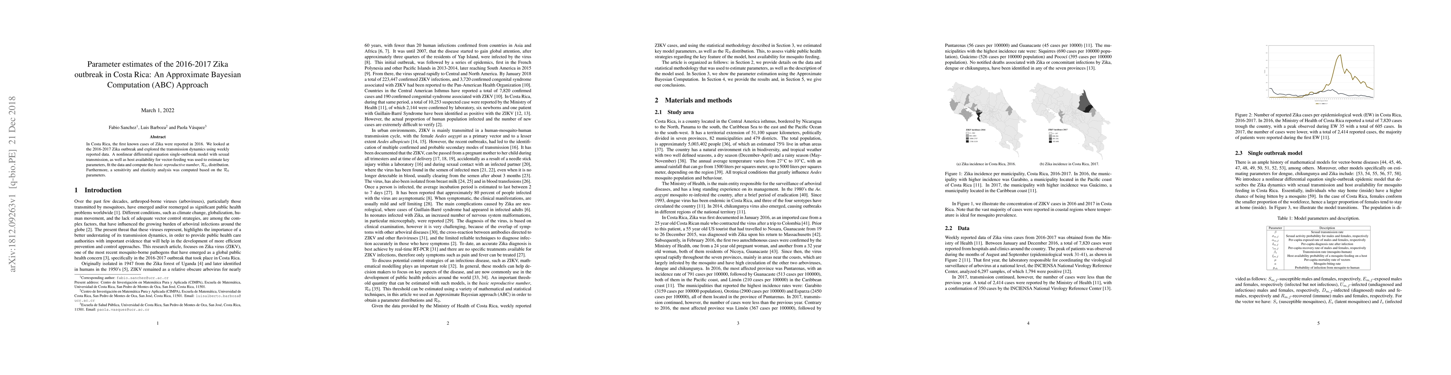 In Costa Rica, the first known cases of Zika were reported in 2016. We looked at the 2016-2017 Zika outbreak and explored the transmission dynamics using weekly reported data. A nonlinear differential equation single-outbreak model with sexual transmission, as well as host availability for vector-feeding was used to estimate key parameters, fit the data and compute the {\it basic reproductive number}, $\mathcal{R}_0$, distribution. Furthermore, a sensitivity and elasticity analysis was computed based on the $\mathcal{R}_0$ parameters.