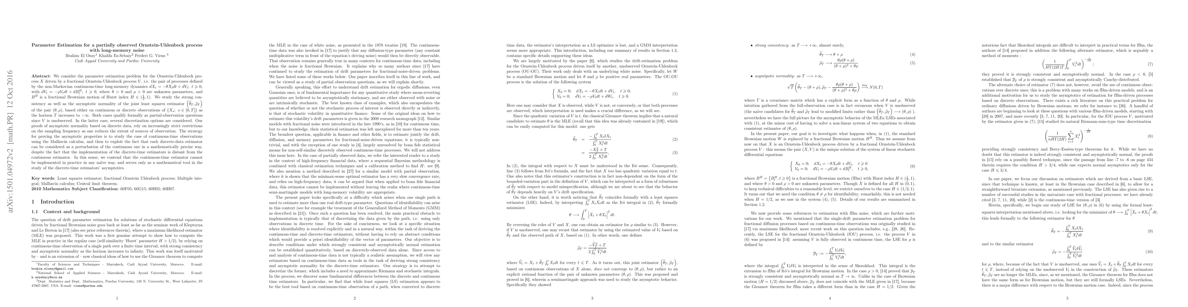 \noindent \textbf{Abstract}: We consider the parameter estimation problem for the Ornstein-Uhlenbeck process $X$ driven by a fractional Ornstein-Uhlenbeck process $V$, i.e. the pair of processes defined by the non-Markovian continuous-time long-memory dynamics $dX_{t}=-\theta X_{t}dt+dV_{t};\ t\geq 0$, with $dV_{t}=-\rho V_{t}dt+dB_{t}^{H};\ t\geq 0$, where $\theta >0$ and $\rho >0$ are unknown parameters, and $B^{H}$ is a fractional Brownian motion of Hurst index $H\in (\frac{1}{2},1)$. We study the strong consistency as well as the asymptotic normality of the joint least squares estimator $(\hat{\theta}_{T},\widehat{\rho }% _{T}) $ of the pair $( \theta ,\rho) $, based either on continuous or discrete observations of $\{X_{s};\ s\in \lbrack 0,T]\}$ as the horizon $T$ increases to +$\infty $. Both cases qualify formally as partial-hbobservation questions since $V$ is unobserved. In the latter case, several discretization options are considered. Our proofs of asymptotic normality based on discrete data, rely on increasingly strict restrictions on the sampling frequency as one reduces the extent of sources of observation. The strategy for proving the asymptotic properties is to study the case of continuous-time observations using the Malliavin calculus, and then to exploit the fact that each discrete-data estimator can be considered as a perturbation of the continuous one in a mathematically precise way, despite the fact that the implementation of the discrete-time estimators is distant from the continuous estimator. In this sense, we contend that the continuous-time estimator cannot be implemented in practice in any na\"ive way, and serves only as a mathematical tool in the study of the discrete-time estimators' asymptotics.