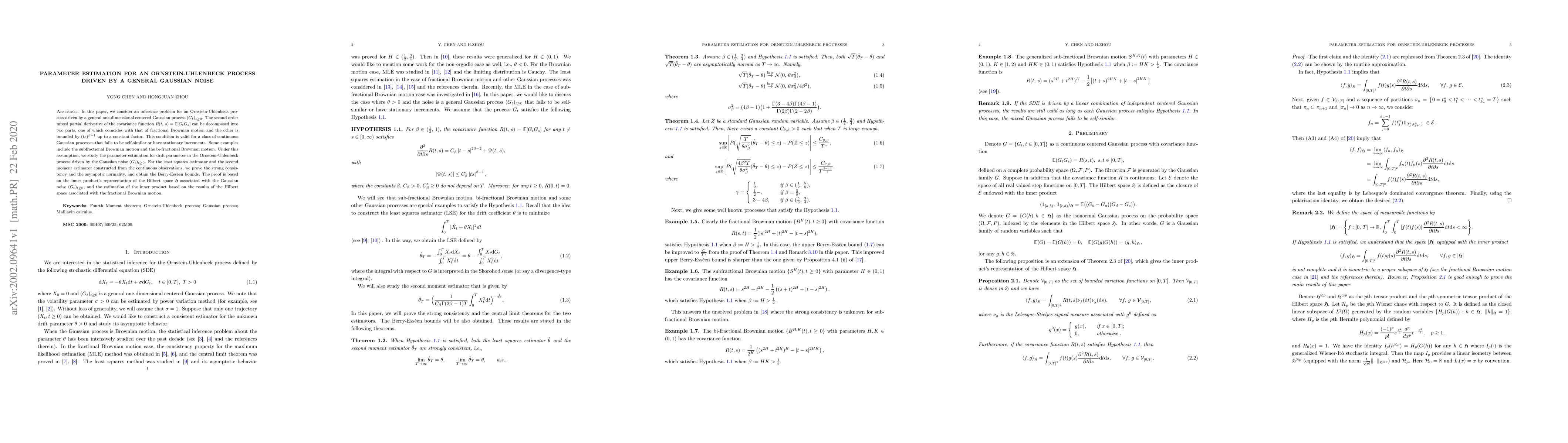This paper investigates parameter estimation for an Ornstein-Uhlenbeck process driven by a general Gaussian noise, proving strong consistency and asymptotic normality for least squares and second moment estimators. The analysis leverages the Hilbert space representation associated with the Gaussian noise and fractional Brownian motion.