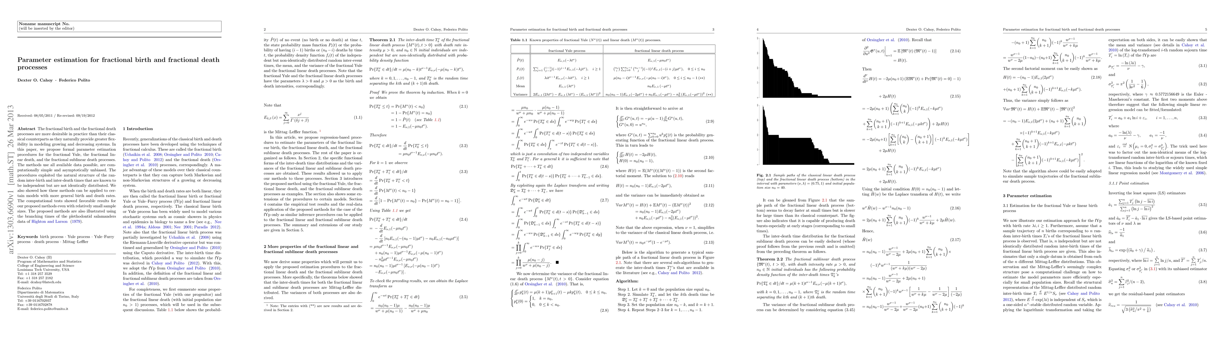 This paper proposes parameter estimation procedures for fractional birth and death processes, which offer greater flexibility in modeling dynamic systems. The methods are computationally simple, asymptotically unbiased, and demonstrated to work well even with small sample sizes, as shown through tests on plethodontid salamanders branching times data.
