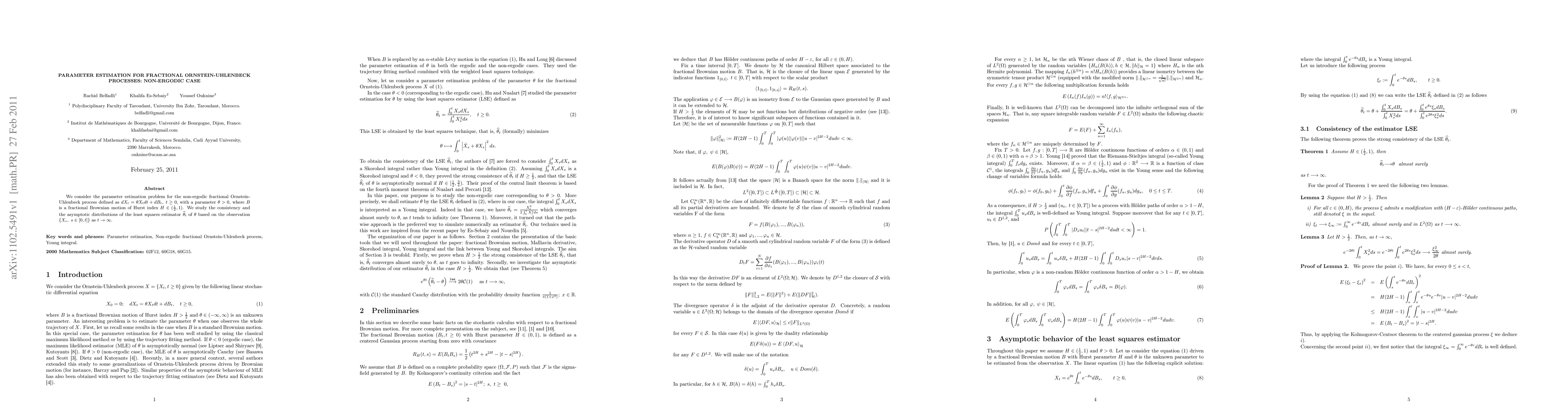 The paper presents a rigorous mathematical analysis of parameter estimation for non-ergodic fractional Ornstein-Uhlenbeck processes, providing strong consistency and asymptotic normality results for the least squares estimator.