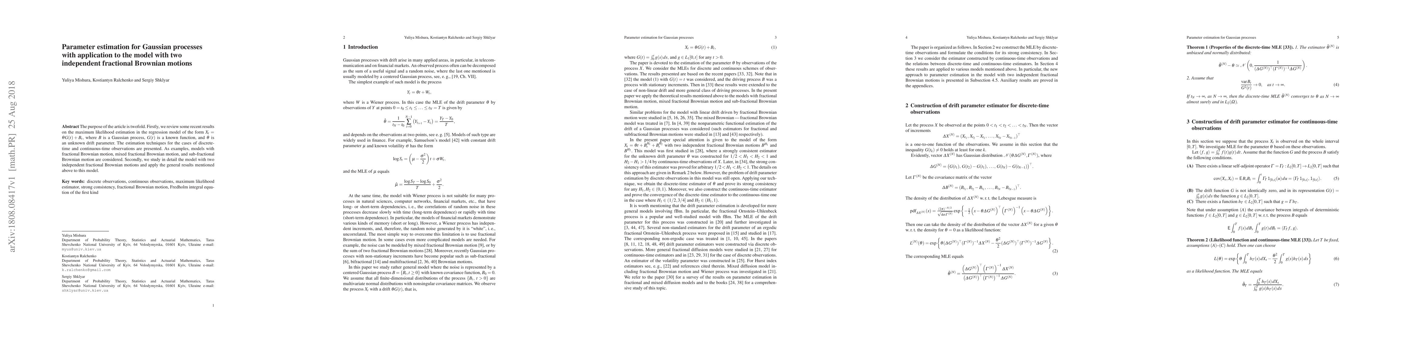 This paper reviews recent maximum likelihood estimation techniques for Gaussian processes, focusing on regression models with fractional Brownian motion. It specifically applies these methods to a model with two independent fractional Brownian motions, providing detailed estimation techniques for both discrete-time and continuous-time observations.