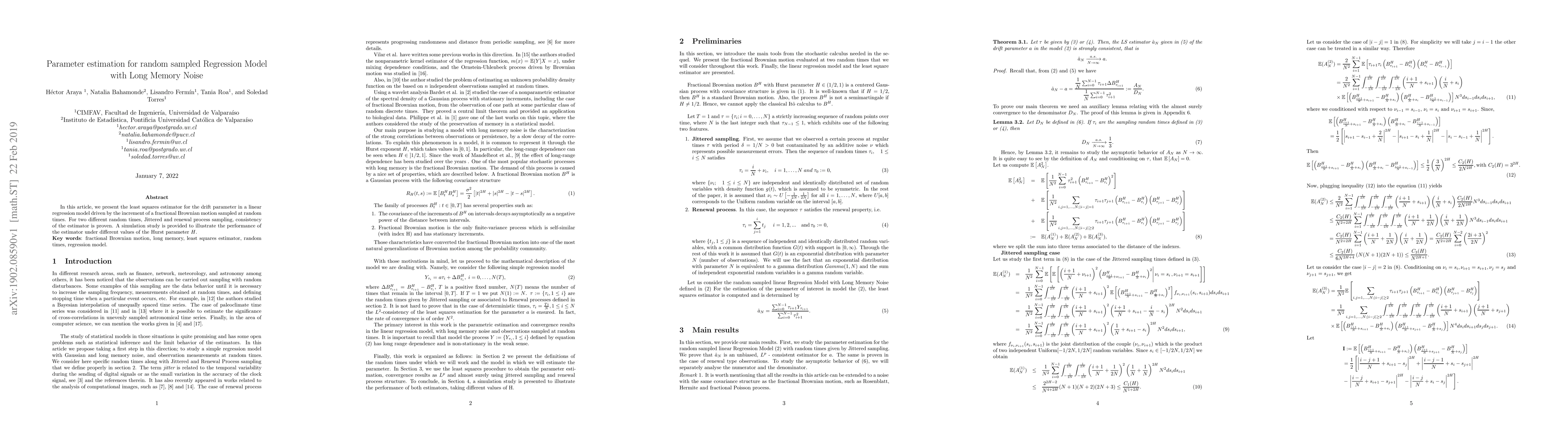 This paper develops a least squares estimator for the drift parameter in a regression model influenced by long memory noise from fractional Brownian motion, sampled at random times. The consistency of the estimator is proven for both Jittered and renewal process sampling, with a simulation study demonstrating its performance across varying Hurst parameters.