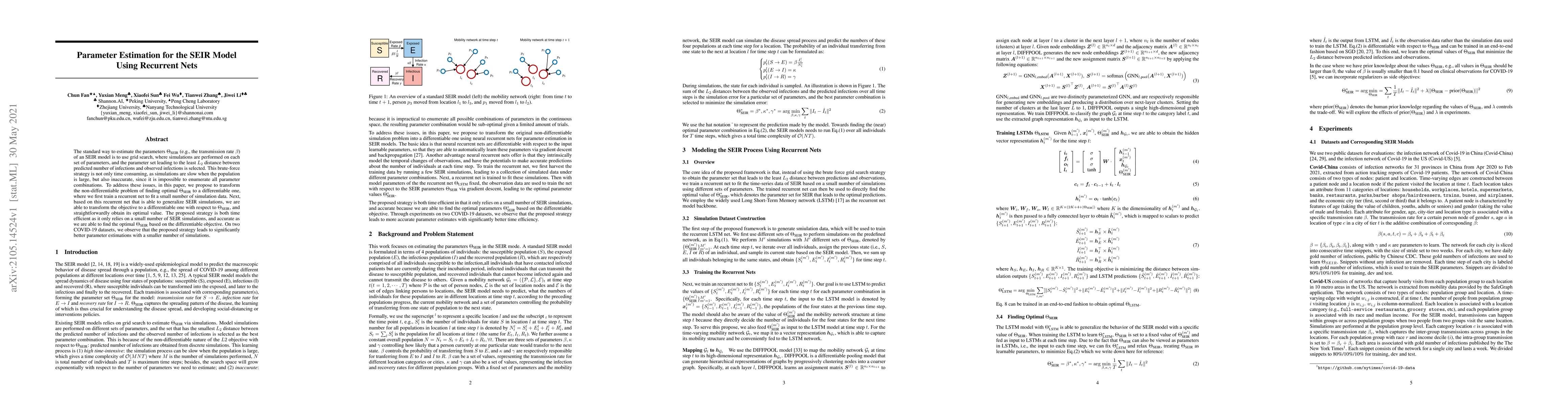 The standard way to estimate the parameters $\Theta_\text{SEIR}$ (e.g., the transmission rate $\beta$) of an SEIR model is to use grid search, where simulations are performed on each set of parameters, and the parameter set leading to the least $L_2$ distance between predicted number of infections and observed infections is selected. This brute-force strategy is not only time consuming, as simulations are slow when the population is large, but also inaccurate, since it is impossible to enumerate all parameter combinations. To address these issues, in this paper, we propose to transform the non-differentiable problem of finding optimal $\Theta_\text{SEIR}$ to a differentiable one, where we first train a recurrent net to fit a small number of simulation data. Next, based on this recurrent net that is able to generalize SEIR simulations, we are able to transform the objective to a differentiable one with respect to $\Theta_\text{SEIR}$, and straightforwardly obtain its optimal value. The proposed strategy is both time efficient as it only relies on a small number of SEIR simulations, and accurate as we are able to find the optimal $\Theta_\text{SEIR}$ based on the differentiable objective. On two COVID-19 datasets, we observe that the proposed strategy leads to significantly better parameter estimations with a smaller number of simulations.