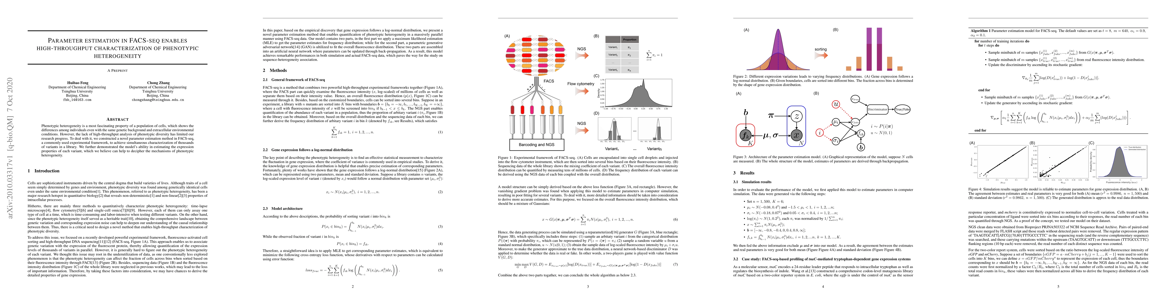 This paper introduces a novel parameter estimation method in FACS-seq to enable high-throughput analysis of phenotypic heterogeneity, enabling the simultaneous characterization of thousands of cellular variants. The method demonstrates the potential to estimate expression properties of each variant, aiding in understanding the mechanisms behind phenotypic diversity.