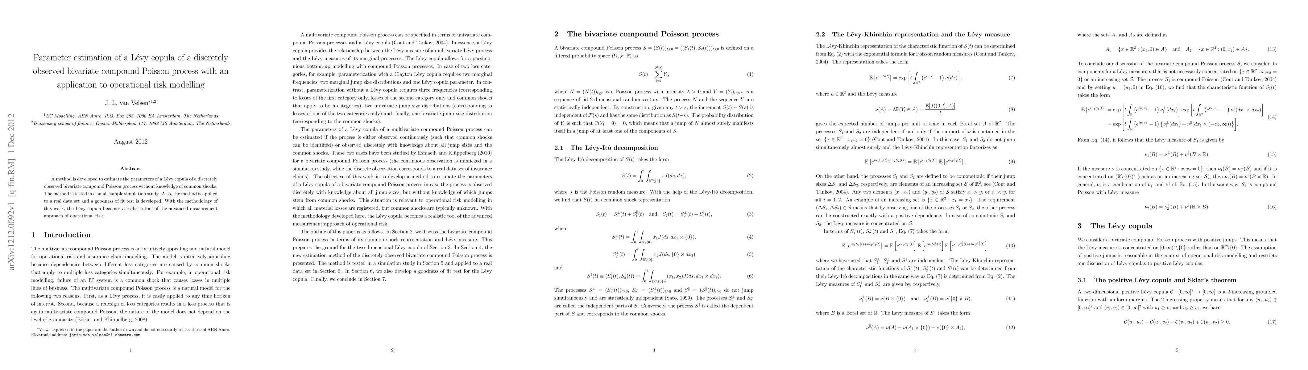 This paper presents a novel method for estimating the parameters of a Levy copula applied to a discretely observed bivariate compound Poisson process, demonstrating its effectiveness through simulation and real data analysis, and establishing it as a viable tool for operational risk modeling.