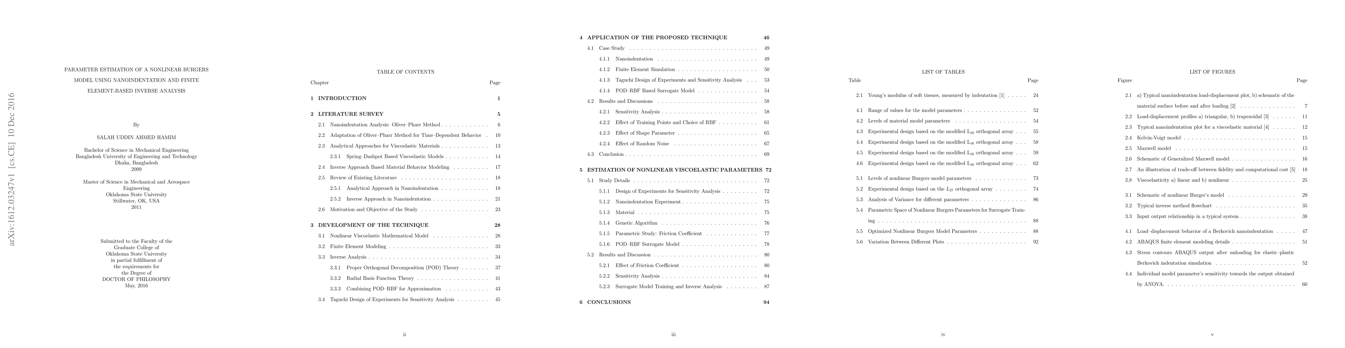 This paper develops a nanoindentation-based method for characterizing nonlinear viscoelastic materials using finite element analysis and inverse analysis. A surrogate model-based approach is employed to calibrate model parameters, optimizing performance while minimizing computational cost.