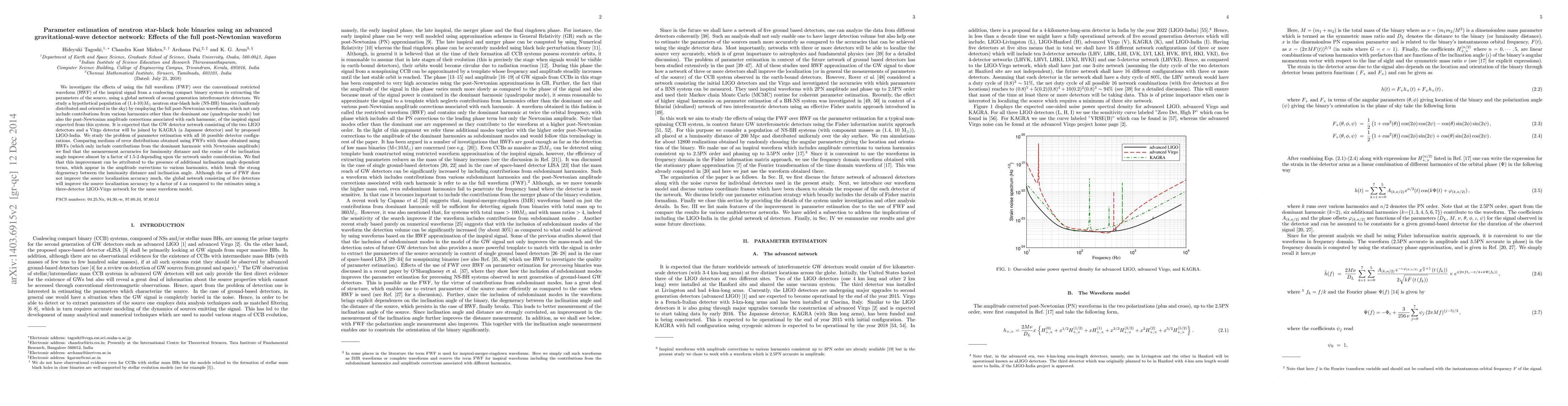 We investigate the effects of using the {\it full} waveform (FWF) over the conventional {\it restricted} waveform (RWF) of the inspiral signal from a coalescing compact binary (CCB) system in extracting the parameters of the source, using a global network of second generation interferometric detectors. We study a hypothetical population of (1.4-10)$M_\odot$ NS-BH binaries (uniformly distributed and oriented in the sky) by employing the full post-Newtonian waveforms, which not only include contributions from various harmonics other than the dominant one (quadrupolar mode) but also the post-Newtonian amplitude corrections associated with each harmonic, of the inspiral signal expected from this system. It is expected that the GW detector network consisting of the two LIGO detectors and a Virgo detector will be joined by KAGRA and by proposed LIGO-India. We study the problem of parameter estimation with all 16 possible detector configurations. Comparing medians of error distributions obtained using FWFs with those obtained using RWFs (which only include contributions from the dominant harmonic with Newtonian amplitude) we find that the measurement accuracies for luminosity distance and the cosine of the inclination angle improve almost by a factor of 1.5-2 depending upon the network under consideration. Although the use of FWF does not improve the source localization accuracy much, the global network consisting of five detectors will improve the source localization accuracy by a factor of 4 as compared to the estimates using a 3 detector LIGO-Virgo network for the same waveform model.