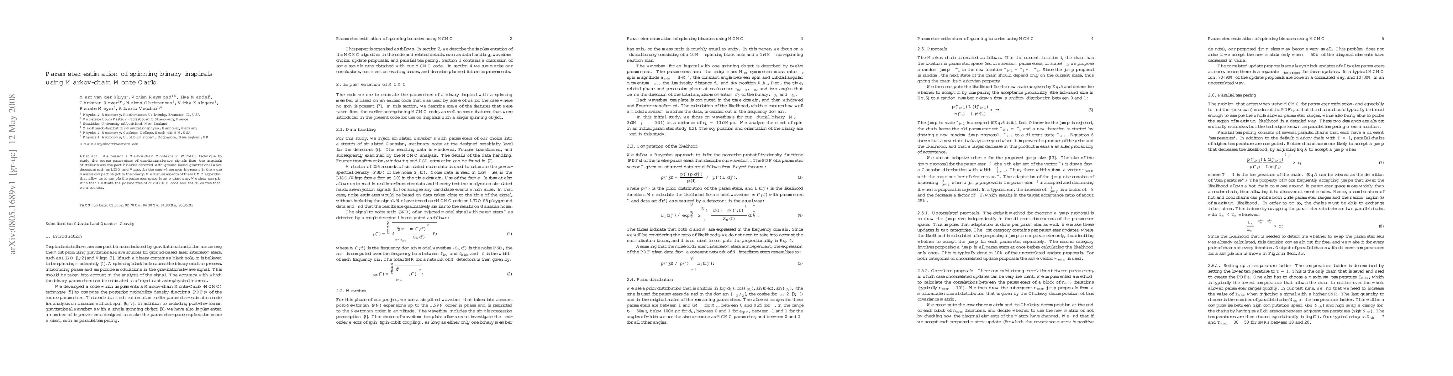 This paper introduces a Markov-chain Monte Carlo (MCMC) method for estimating parameters of gravitational-wave signals from spinning binary inspirals detected by LIGO and Virgo. The authors discuss the efficiency of their MCMC algorithm and present sample runs to demonstrate its capabilities and challenges.