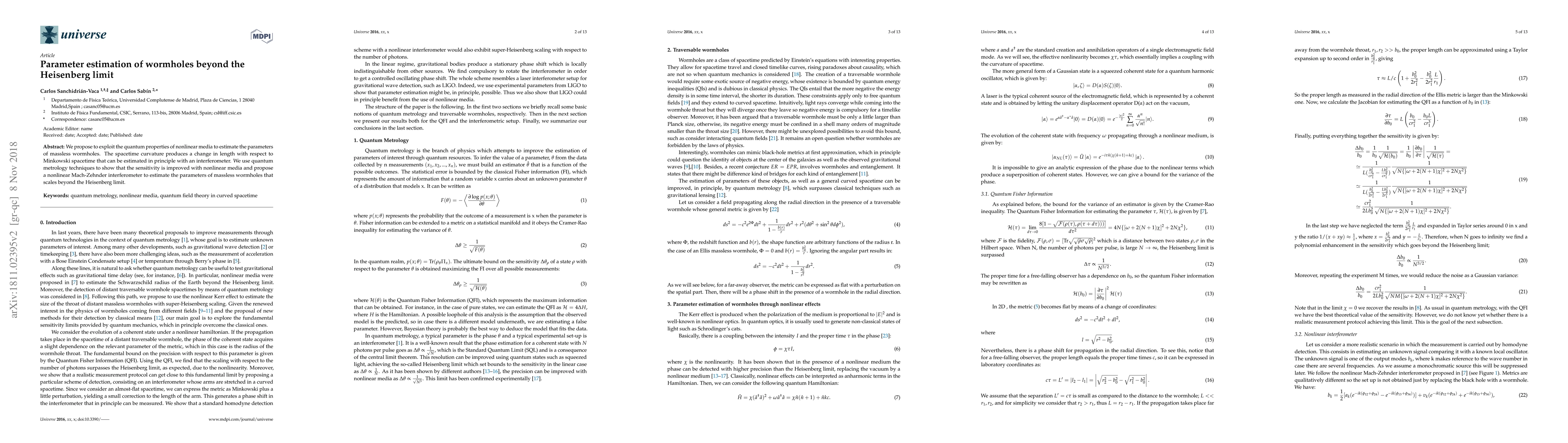 Researchers propose using nonlinear media to estimate wormhole parameters beyond the Heisenberg limit through quantum metrology techniques, improving sensitivity with a proposed Mach-Zehnder interferometer.