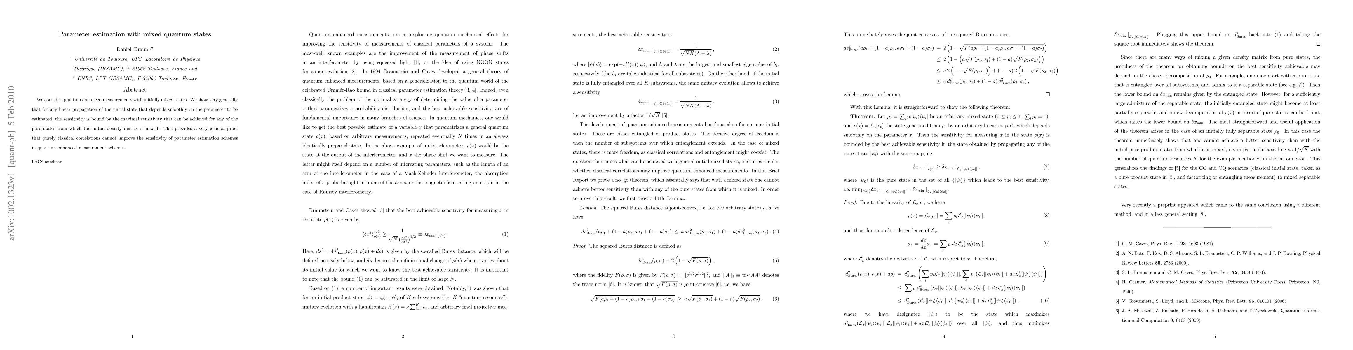 This paper demonstrates that the sensitivity of quantum enhanced measurements with mixed initial states is limited by the maximal sensitivity achievable with any pure state component of the mixed state. It concludes that classical correlations cannot enhance the sensitivity in such quantum measurement schemes.