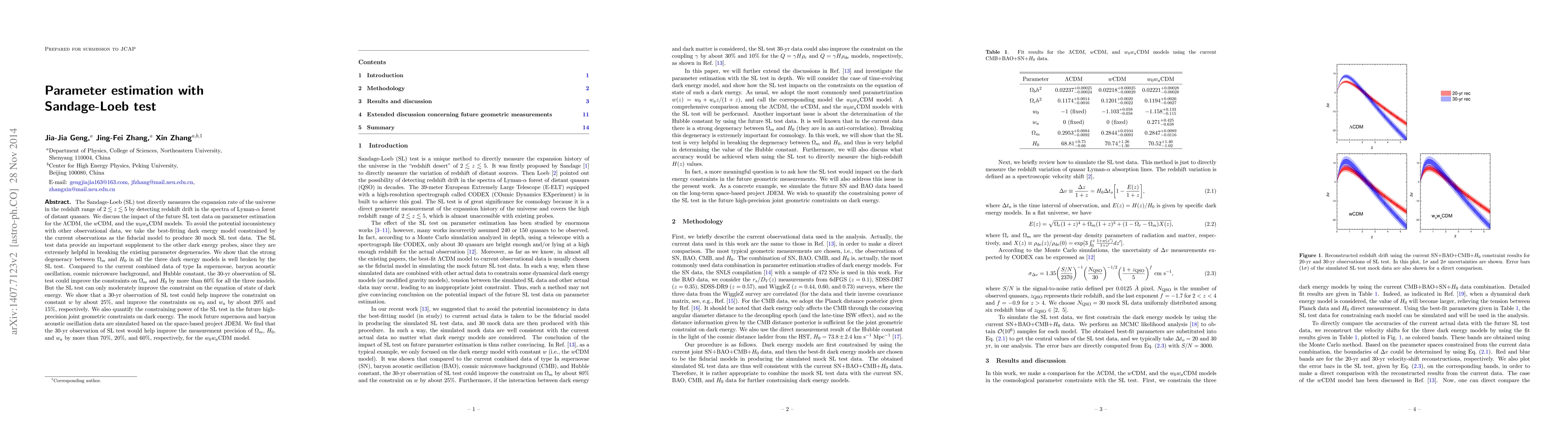 The Sandage-Loeb test measures the universe's expansion rate via redshift drift in Lyman-$\alpha$ forest spectra of distant quasars, providing valuable data to break existing parameter degeneracies in $\Lambda$CDM, $w$CDM, and $w_0w_a$CDM models. A 30-year observation of SL test data could improve constraints on $\Omega_m$ and $H_0$ by over 60%, but only moderately improve constraints on the equation of state of dark energy.
