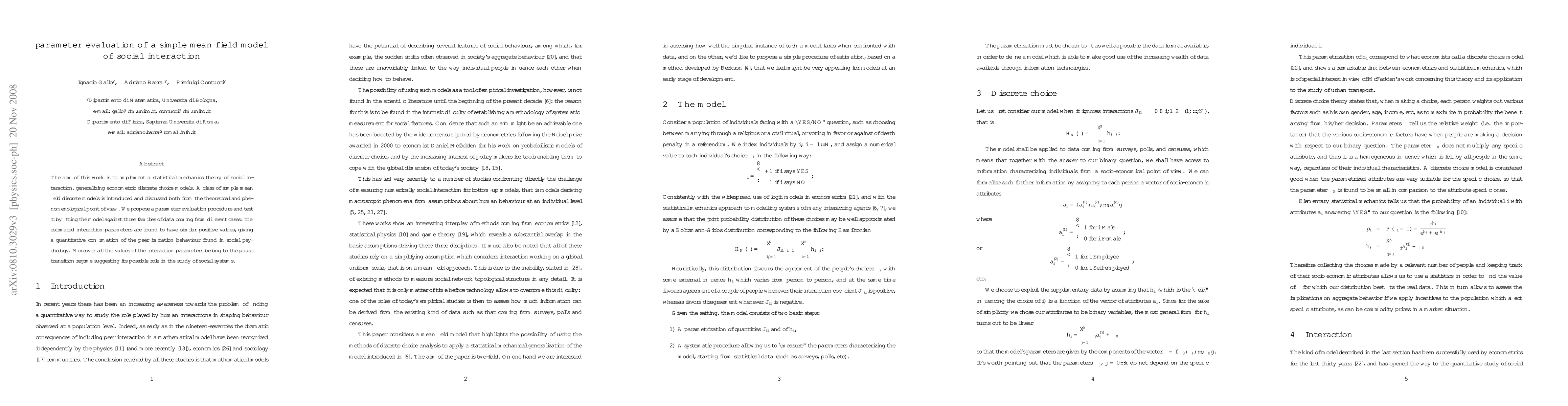 The aim of this work is to implement a statistical mechanics theory of social interaction, generalizing econometric discrete choice models. A class of simple mean field discrete models is introduced and discussed both from the theoretical and phenomenological point of view. We propose a parameter evaluation procedure and test it by fitting our model against three families of data coming from different cases: the estimated interaction parameters are found to have similar positive values establishing a quantitative confirmation of the peer imitation behavior found in social psychology. Moreover all the values of the interaction parameters belong to the phase transition regime suggesting its possible role in the study of social systems.