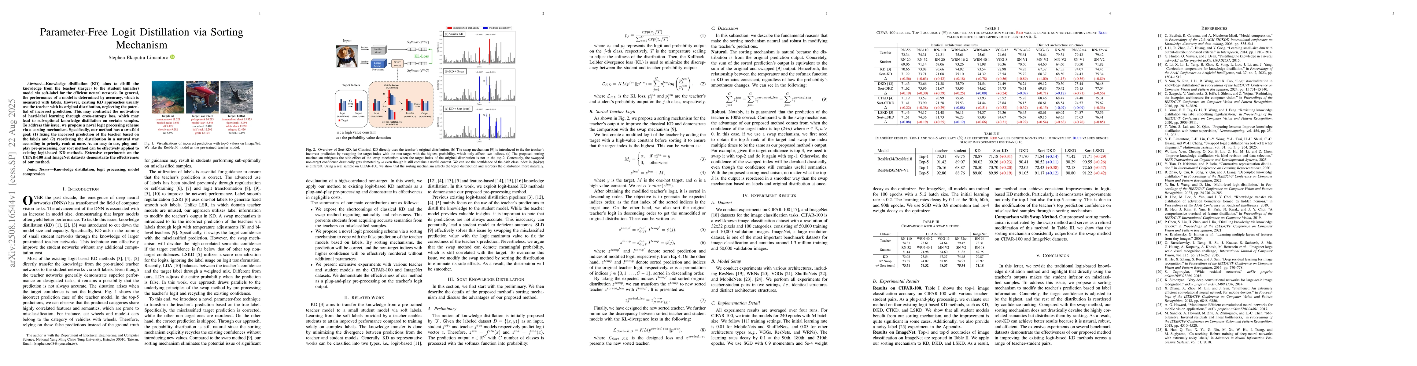 Knowledge distillation (KD) aims to distill the knowledge from the teacher (larger) to the student (smaller) model via soft-label for the efficient neural network. In general, the performance of a model is determined by accuracy, which is measured with labels. However, existing KD approaches usually use the teacher with its original distribution, neglecting the potential of incorrect prediction. This may contradict the motivation of hard-label learning through cross-entropy loss, which may lead to sub-optimal knowledge distillation on certain samples. To address this issue, we propose a novel logit processing scheme via a sorting mechanism. Specifically, our method has a two-fold goal: (1) fixing the incorrect prediction of the teacher based on the labels and (2) reordering the distribution in a natural way according to priority rank at once. As an easy-to-use, plug-and-play pre-processing, our sort method can be effectively applied to existing logit-based KD methods. Extensive experiments on the CIFAR-100 and ImageNet datasets demonstrate the effectiveness of our method.