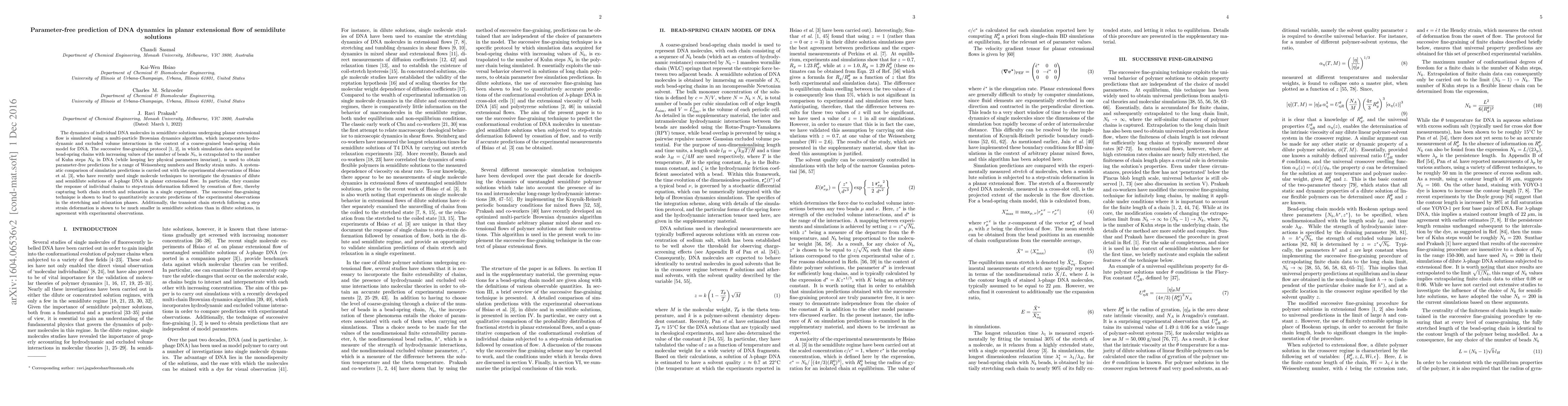 This paper simulates the dynamics of DNA molecules in semidilute solutions under planar extensional flow using a multi-particle Brownian dynamics algorithm. The successive fine-graining protocol provides parameter-free predictions that match experimental observations of chain stretch and relaxation, showing smaller transient stretch in semidilute solutions compared to dilute solutions.
