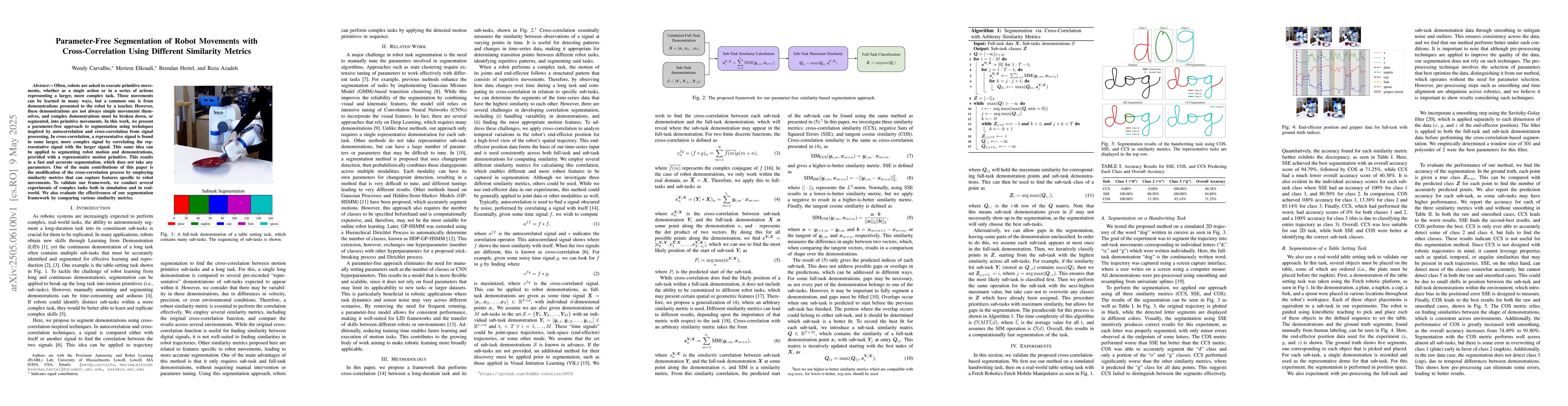 The research presents a parameter-free approach to segment robot motion demonstrations using cross-correlation techniques inspired by signal processing. It modifies the cross-correlation process by employing similarity metrics tailored for robot movements.