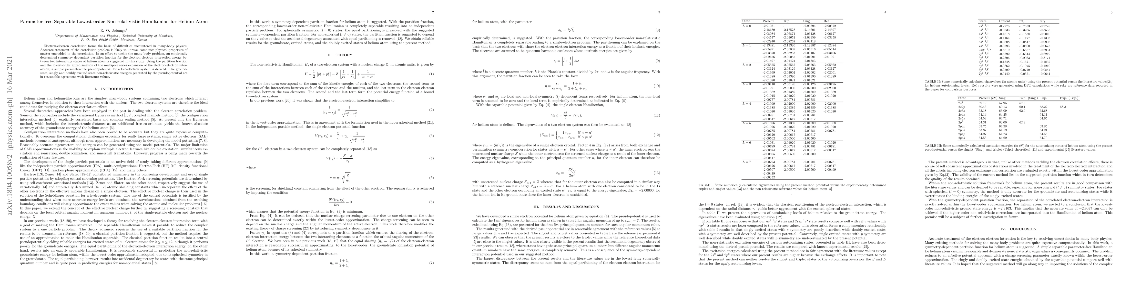 Electron-electron correlation forms the basis of difficulties encountered in many-body physics. Accurate treatment of the correlation problem is likely to unravel some nice physical properties of matter embedded in the correlation. In an effort to tackle the many-body problem, an empirically determined symmetry-dependent partition fraction for the electron-electron interaction energy between two interacting states of helium atom is suggested in this study. Using the partition fraction and the lowest-order approximation of the multipole series expansion of the electron-electron interaction, a simple parameter-free pseudopotential for a two-electron system is derived. The groundstate, singly and doubly excited state non-relativistic energies generated by the pseudopotential are in reasonable agreement with literature values.