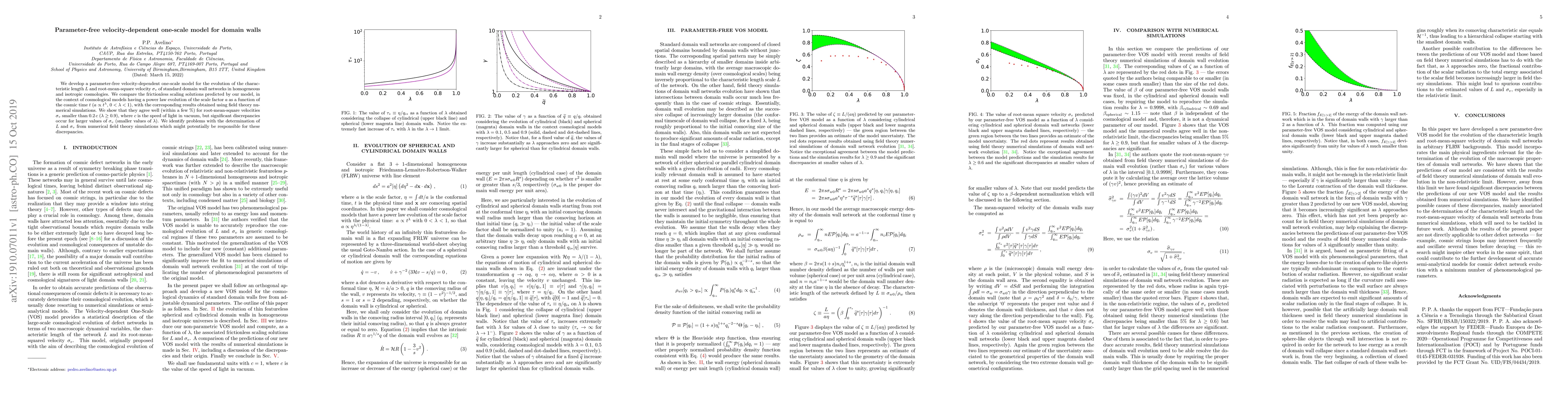 This paper introduces a parameter-free velocity-dependent model for domain wall evolution, showing good agreement with numerical simulations for low velocities but identifying discrepancies at higher velocities, potentially due to issues in simulation methods.