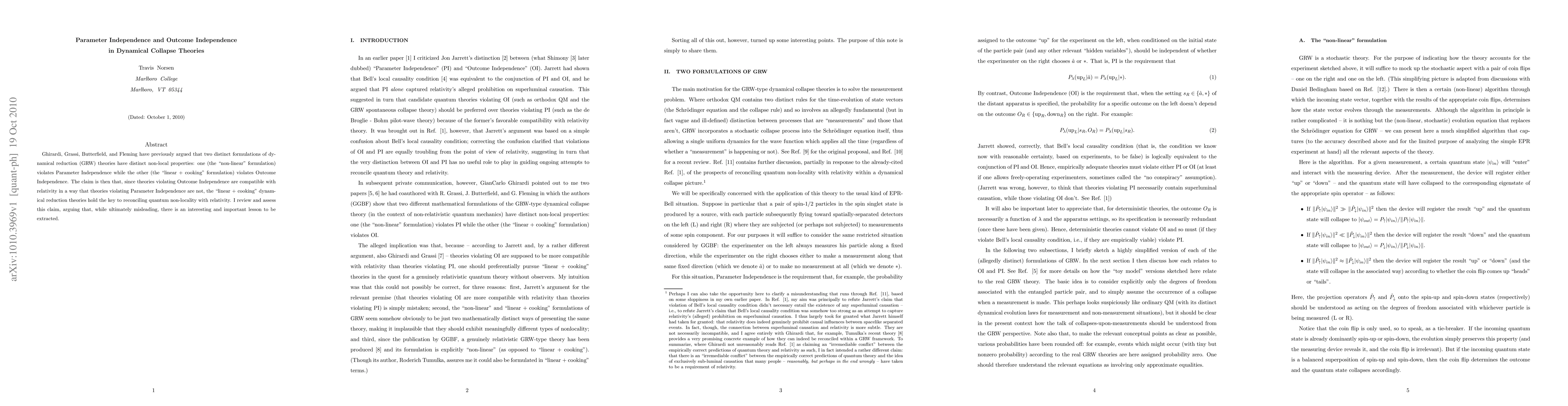 Ghirardi, Grassi, Butterfield, and Fleming have previously argued that two distinct formulations of dynamical reduction (GRW) theories have distinct non-local properties: one (the "non-linear" formulation) violates Parameter Independence while the other (the "linear + cooking" formulation) violates Outcome Independence. The claim is then that, since theories violating Outcome Independence are compatible with relativity in a way that theories violating Parameter Independence are not, the "linear + cooking" dynamical reduction theories hold the key to reconciling quantum non-locality with relativity. I review and assess this claim, arguing that, while ultimately misleading, there is an interesting and important lesson to be extracted.
