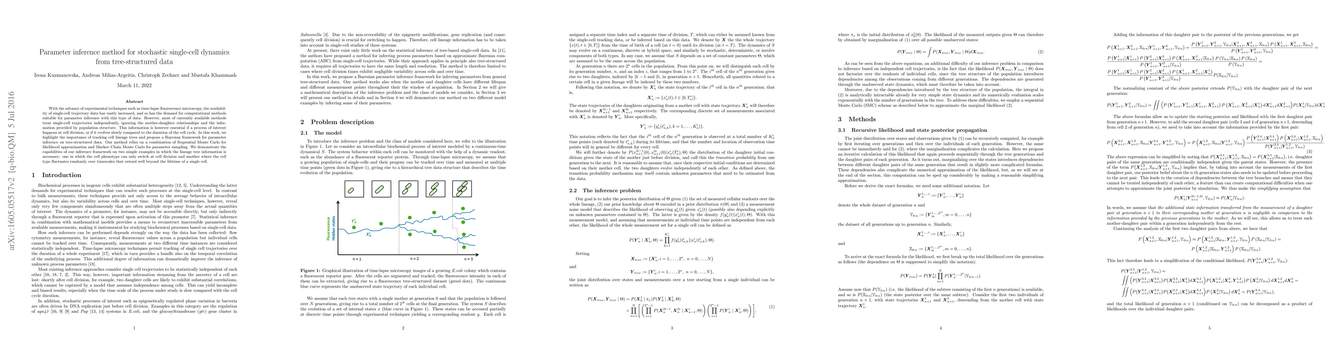 With the advance of experimental techniques such as time-lapse fluorescence microscopy, the availability of single-cell trajectory data has vastly increased, and so has the demand for computational methods suitable for parameter inference with this type of data. However, most of the currently available methods treat single-cell trajectories independently, ignoring the mother-daughter relationships and the information provided by population structure. This information is however essential if a process of interest happens at cell division, or if it evolves slowly compared to the duration of the cell cycle. In this work, we highlight the importance of tracking cell lineage trees and propose a Bayesian framework for parameter inference on tree-structured data. Our method relies on a combination of Sequential Monte Carlo for likelihood approximation and Markov Chain Monte Carlo for parameter sampling. We demonstrate the capabilities of our inference framework on two simple examples in which the lineage tree information is necessary: one in which the cell phenotype can only switch at cell division and another where the cell type fluctuates randomly over timescales that extend well beyond the lifetime of a single cell.