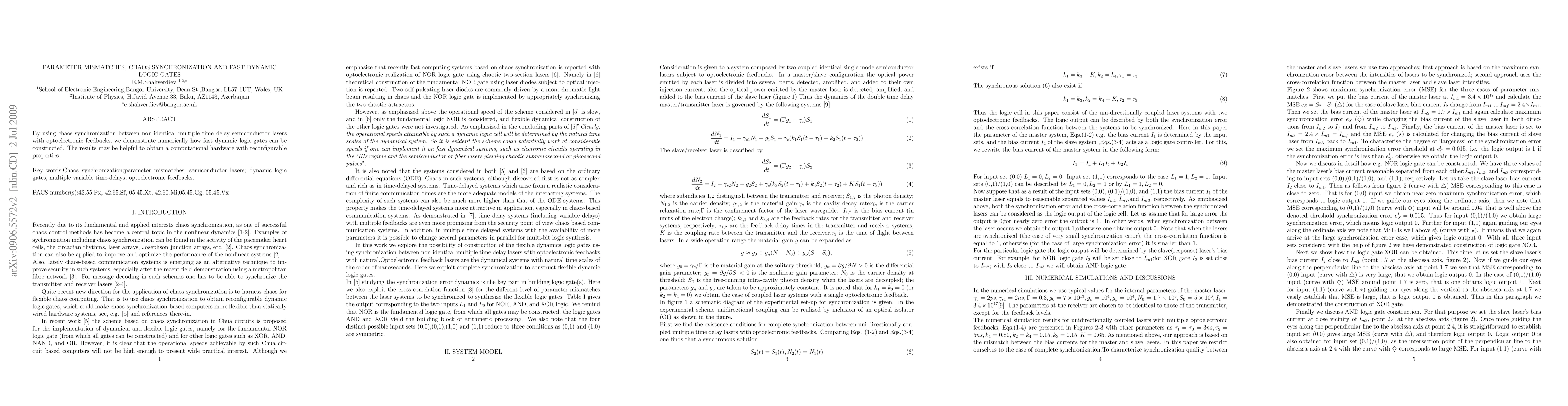 This paper demonstrates the construction of fast dynamic logic gates through chaos synchronization in non-identical semiconductor lasers with optoelectronic feedbacks. The findings suggest potential for developing reconfigurable computational hardware.