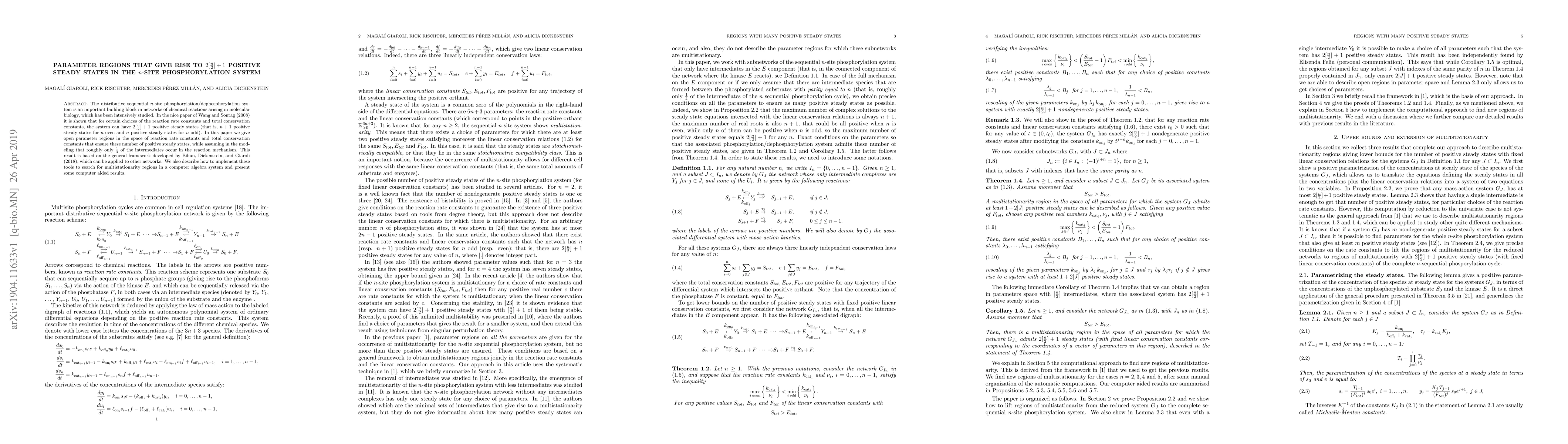This paper identifies open parameter regions in the n-site phosphorylation system that ensure the existence of 2[n/2]+1 positive steady states, based on a framework developed by Bihan, Dickenstein, and Giaroli. It also details computational methods for finding these regions and presents results from computer-aided analysis.