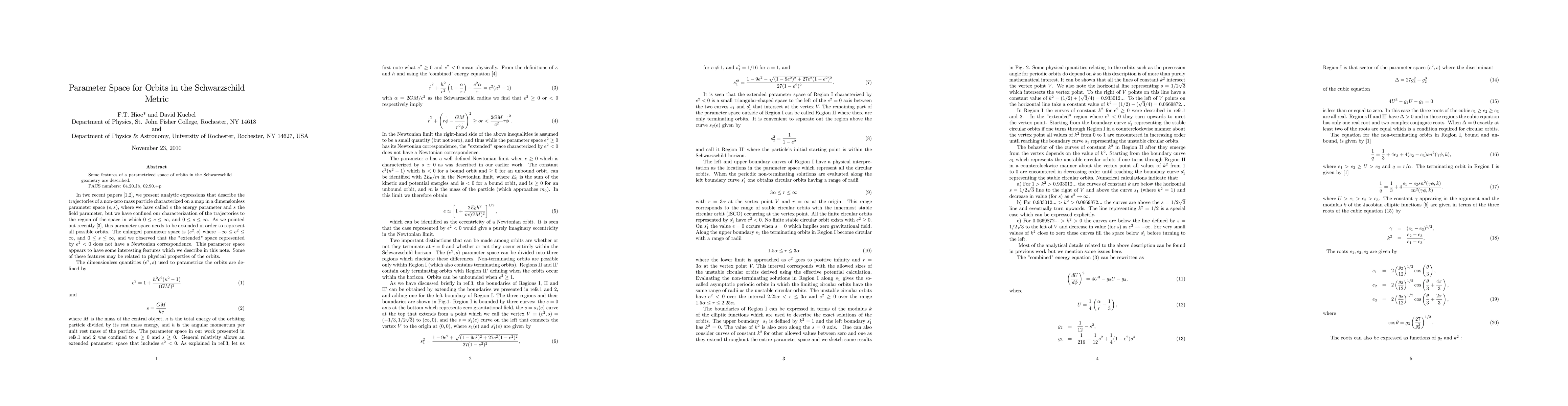 Some features of a parametrized space of orbits in the Schwarzschild geometry are described.