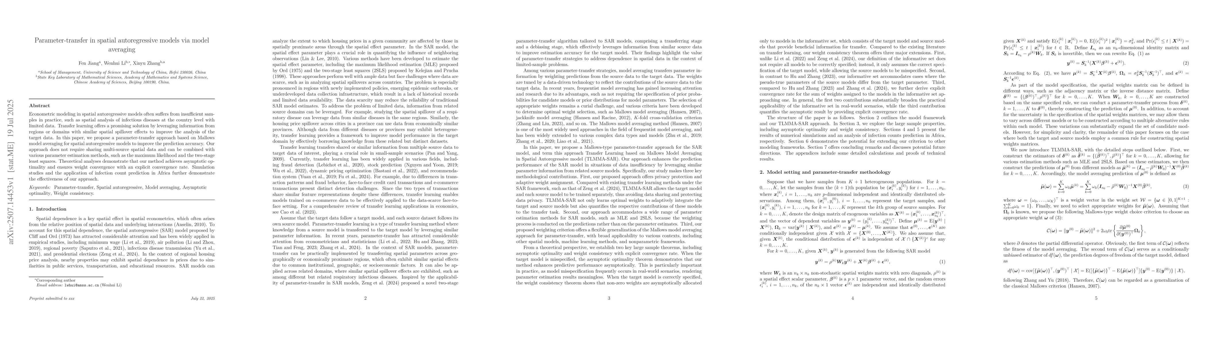 Econometric modeling in spatial autoregressive models often suffers from insufficient samples in practice, such as spatial analysis of infectious diseases at the country level with limited data. Transfer learning offers a promising solution by leveraging information from regions or domains with similar spatial spillover effects to improve the analysis of the target data. In this paper, we propose a parameter-transfer approach based on Mallows model averaging for spatial autoregressive models to improve the prediction accuracy. Our approach does not require sharing multi-source spatial data and can be combined with various parameter estimation methods, such as the maximum likelihood and the two-stage least squares. Theoretical analyses demonstrate that our method achieves asymptotic optimality and ensures weight convergence with an explicit convergence rate. Simulation studies and the application of infection count prediction in Africa further demonstrate the effectiveness of our approach.