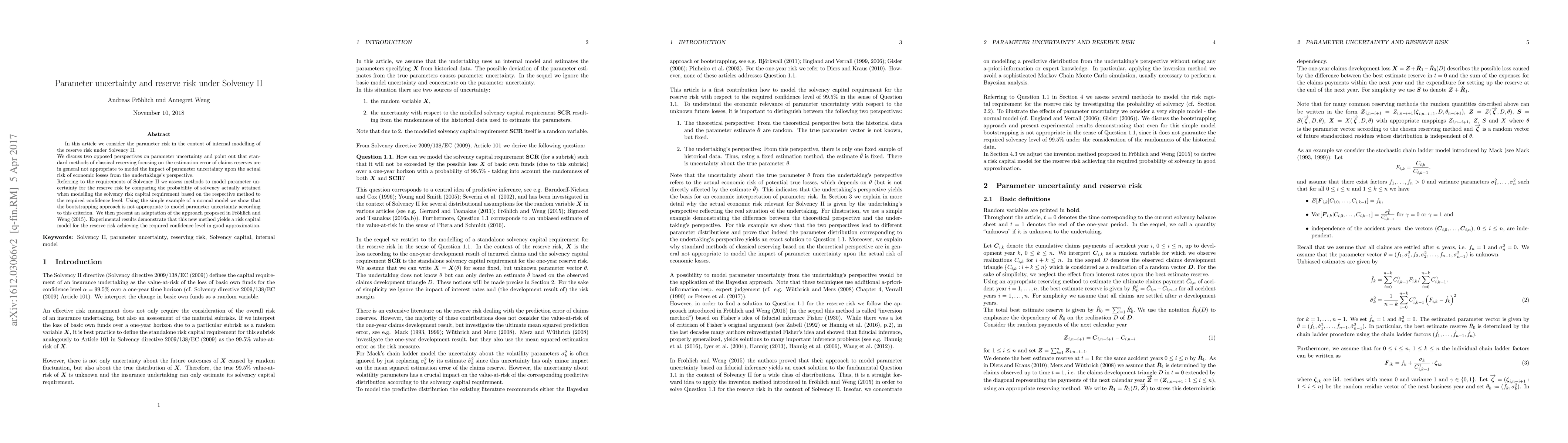 This paper examines parameter uncertainty in the context of internal modelling for reserve risk under Solvency II, arguing that traditional methods are inadequate for capturing economic loss risks. It proposes an adapted method, demonstrating through experiments that it better aligns with the required confidence level for solvency risk capital.