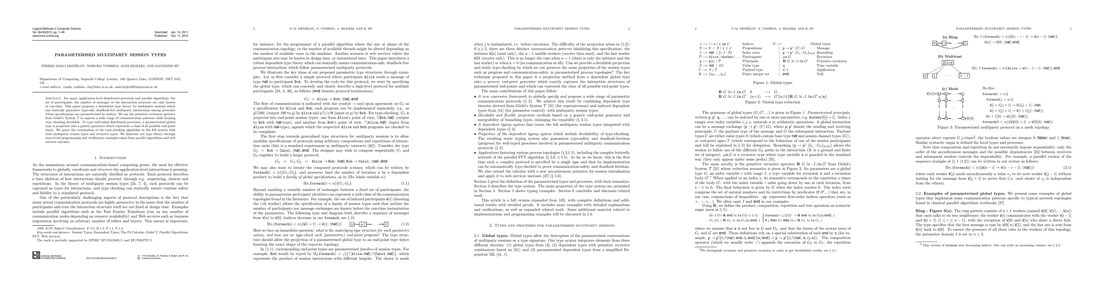 This paper introduces a dependent type theory for multiparty session types to ensure type-safe, deadlock-free interactions among dynamically specified processes. It employs primitive recursion to manage communication patterns and proves the termination of the type-checking algorithm, demonstrated through parallel algorithms and Web services examples.