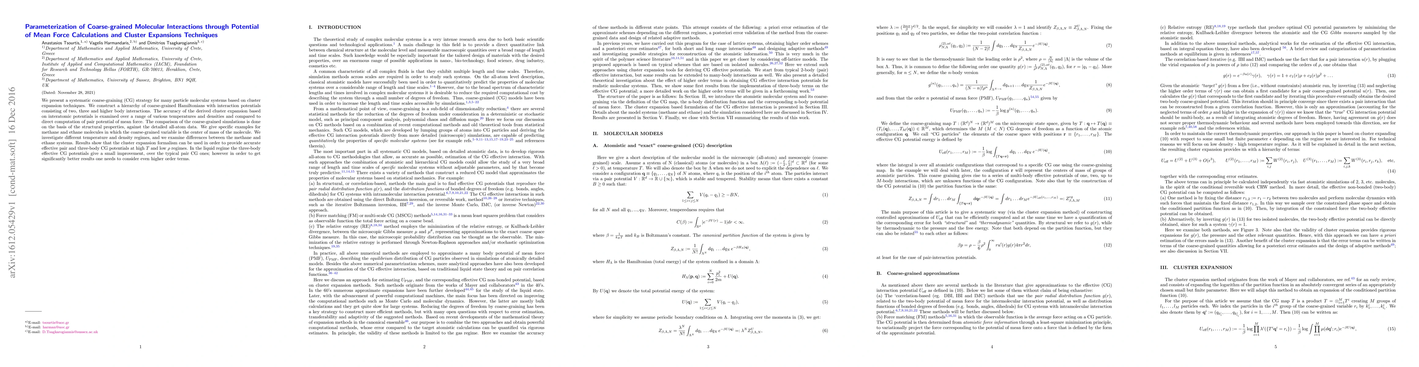 This paper proposes a systematic coarse-graining strategy for molecular systems using cluster expansion techniques, demonstrating accurate effective pair and three-body potentials at high temperatures and low densities. The method is validated against detailed all-atom data for methane and ethane, showing small improvements from three-body potentials in liquid regimes.