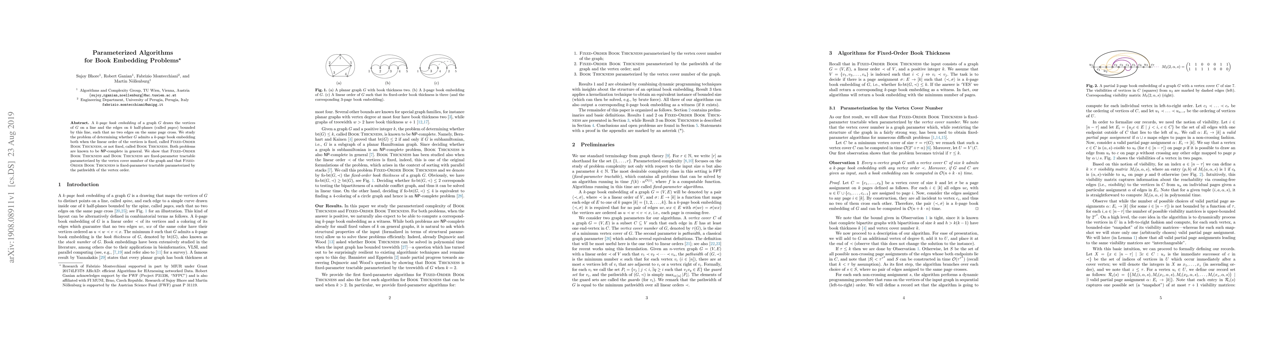 This paper investigates the fixed-parameter tractability of book embedding problems for graphs, showing that both Fixed-Order Book Thickness and Book Thickness can be solved efficiently when parameterized by the vertex cover number, while Fixed-Order Book Thickness also allows for efficient solutions parameterized by the pathwidth of the vertex order.