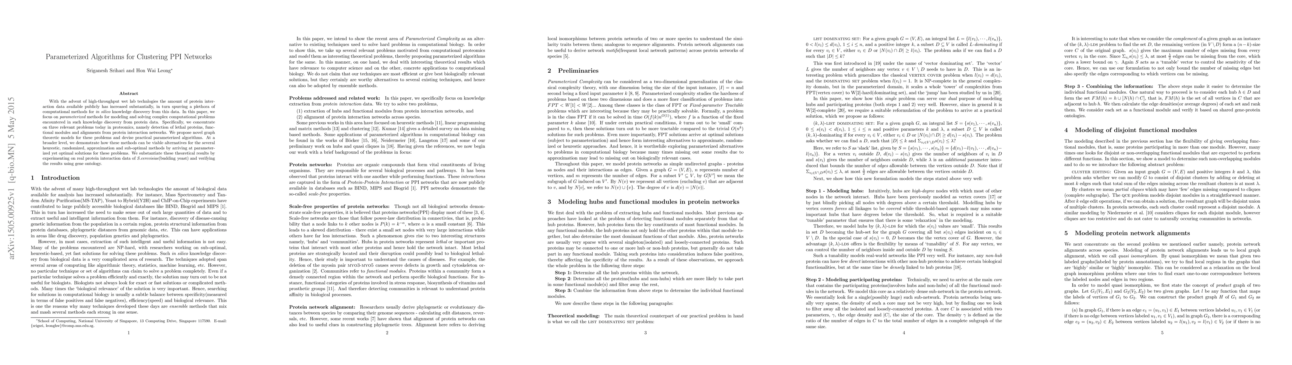 This paper proposes novel parameterized algorithms for solving complex computational problems in proteomics, specifically for detecting lethal proteins, functional modules, and alignments in protein interaction networks. The authors demonstrate that these methods provide optimal solutions, contrasting with existing heuristic approaches, and validate their effectiveness using real yeast protein interaction data.