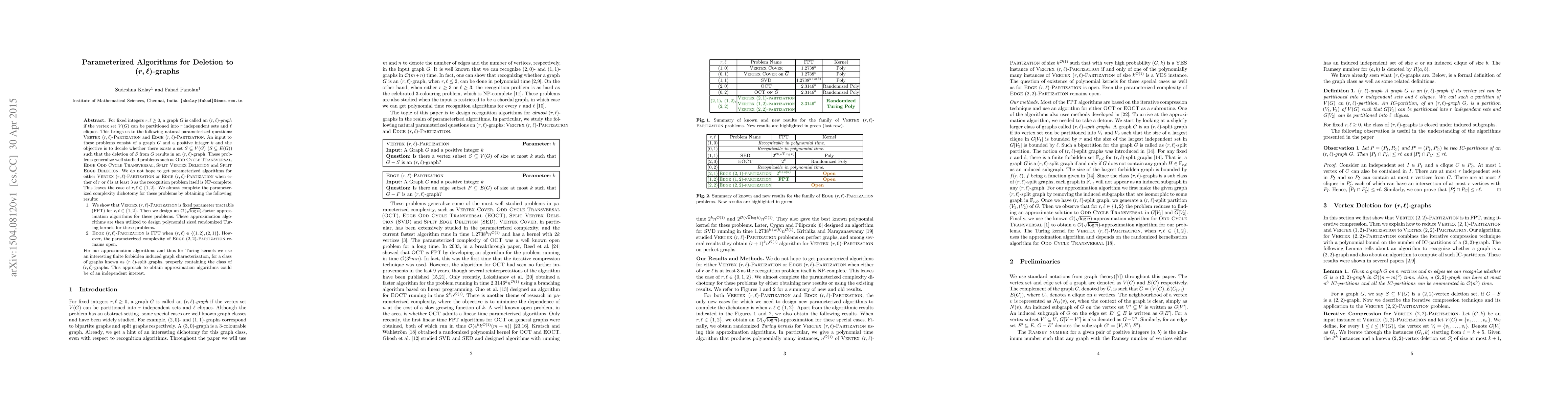 For fixed integers $r,\ell \geq 0$, a graph $G$ is called an {\em $(r,\ell)$-graph} if the vertex set $V(G)$ can be partitioned into $r$ independent sets and $\ell$ cliques. This brings us to the following natural parameterized questions: {\sc Vertex $(r,\ell)$-Partization} and {\sc Edge $(r,\ell)$-Partization}. An input to these problems consist of a graph $G$ and a positive integer $k$ and the objective is to decide whether there exists a set $S\subseteq V(G)$ ($S\subseteq E(G)$) such that the deletion of $S$ from $G$ results in an $(r,\ell)$-graph. These problems generalize well studied problems such as {\sc Odd Cycle Transversal}, {\sc Edge Odd Cycle Transversal}, {\sc Split Vertex Deletion} and {\sc Split Edge Deletion}. We do not hope to get parameterized algorithms for either {\sc Vertex $(r,\ell)$-Partization} or {\sc Edge $(r,\ell)$-Partization} when either of $r$ or $\ell$ is at least $3$ as the recognition problem itself is NP-complete. This leaves the case of $r,\ell \in \{1,2\}$. We almost complete the parameterized complexity dichotomy for these problems. Only the parameterized complexity of {\sc Edge $(2,2)$-Partization} remains open. We also give an approximation algorithm and a Turing kernelization for {\sc Vertex $(r,\ell)$-Partization}. We use an interesting finite forbidden induced graph characterization, for a class of graphs known as $(r,\ell)$-split graphs, properly containing the class of $(r,\ell)$-graphs. This approach to obtain approximation algorithms could be of an independent interest.