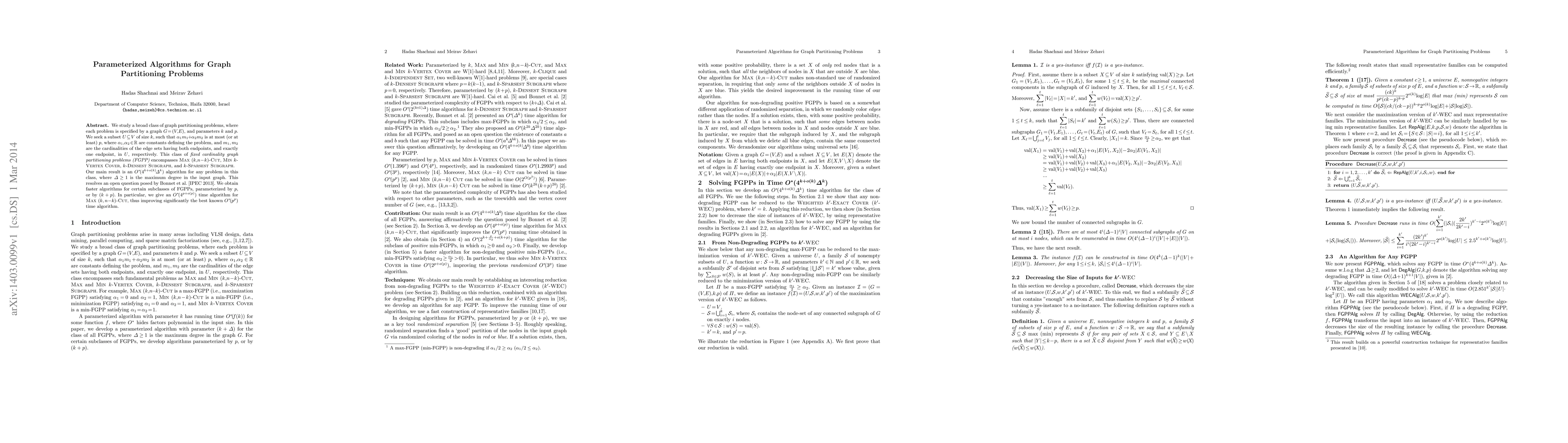 We study a broad class of graph partitioning problems, where each problem is specified by a graph $G=(V,E)$, and parameters $k$ and $p$. We seek a subset $U\subseteq V$ of size $k$, such that $\alpha_1m_1 + \alpha_2m_2$ is at most (or at least) $p$, where $\alpha_1,\alpha_2\in\mathbb{R}$ are constants defining the problem, and $m_1, m_2$ are the cardinalities of the edge sets having both endpoints, and exactly one endpoint, in $U$, respectively. This class of fixed cardinality graph partitioning problems (FGPP) encompasses Max $(k,n-k)$-Cut, Min $k$-Vertex Cover, $k$-Densest Subgraph, and $k$-Sparsest Subgraph. Our main result is an $O^*(4^{k+o(k)}\Delta^k)$ algorithm for any problem in this class, where $\Delta \geq 1$ is the maximum degree in the input graph. This resolves an open question posed by Bonnet et al. [IPEC 2013]. We obtain faster algorithms for certain subclasses of FGPPs, parameterized by $p$, or by $(k+p)$. In particular, we give an $O^*(4^{p+o(p)})$ time algorithm for Max $(k,n-k)$-Cut, thus improving significantly the best known $O^*(p^p)$ time algorithm.