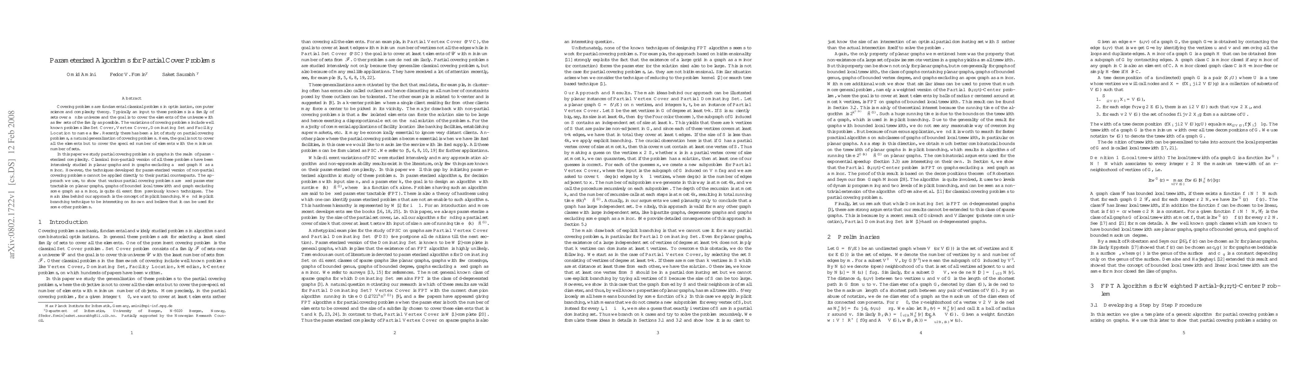This paper investigates the parameterized complexity of partial covering problems in graphs, focusing on achieving a specified number of elements' coverage with minimal sets. The authors introduce a novel implicit branching technique to demonstrate fixed parameter tractability for these problems in specific graph classes, differing from traditional methods used for non-partial versions.